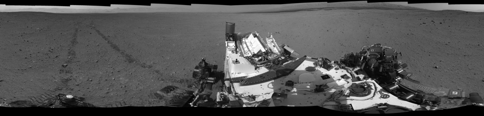 Sol 29 Navcam pan. I love to see these tracks, going to the horizon.
