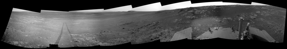 BTW, in Ant's latest navcam mosaic I like how you can see so much of our recent tracks around the "loop". |